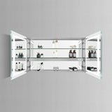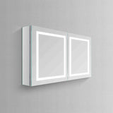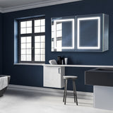 The Andromeda Illuminated Cabinet Vanity Mirror features a crystal-clear dual door mirror with premium LED lighting inside and out, and compartment storage with 2 adjustable glass shelves – the perfect mirror for your bathroom, bedroom, or beauty room.