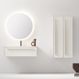 - Matte finish solid surface in matte white with a 35mm faucet hole and overflow.