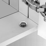 - Double edge-lit mirrored cabinet doors provide a touch of lux