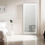 features a grandiose 85-by-40-inch crystal-clear mirror with premium daylight LED lighting that also can be wall-mounted horizontally or vertically – the perfect dressing mirror for any room in your home or business.