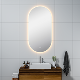 The Cassiopeia Pill Illuminated Vanity Mirror features a sleek, frameless mirror with premium backlit LED lighting that can be wall-mounted vertically or horizontally – the perfect mirror for your bathroom, bedroom, or beauty room.